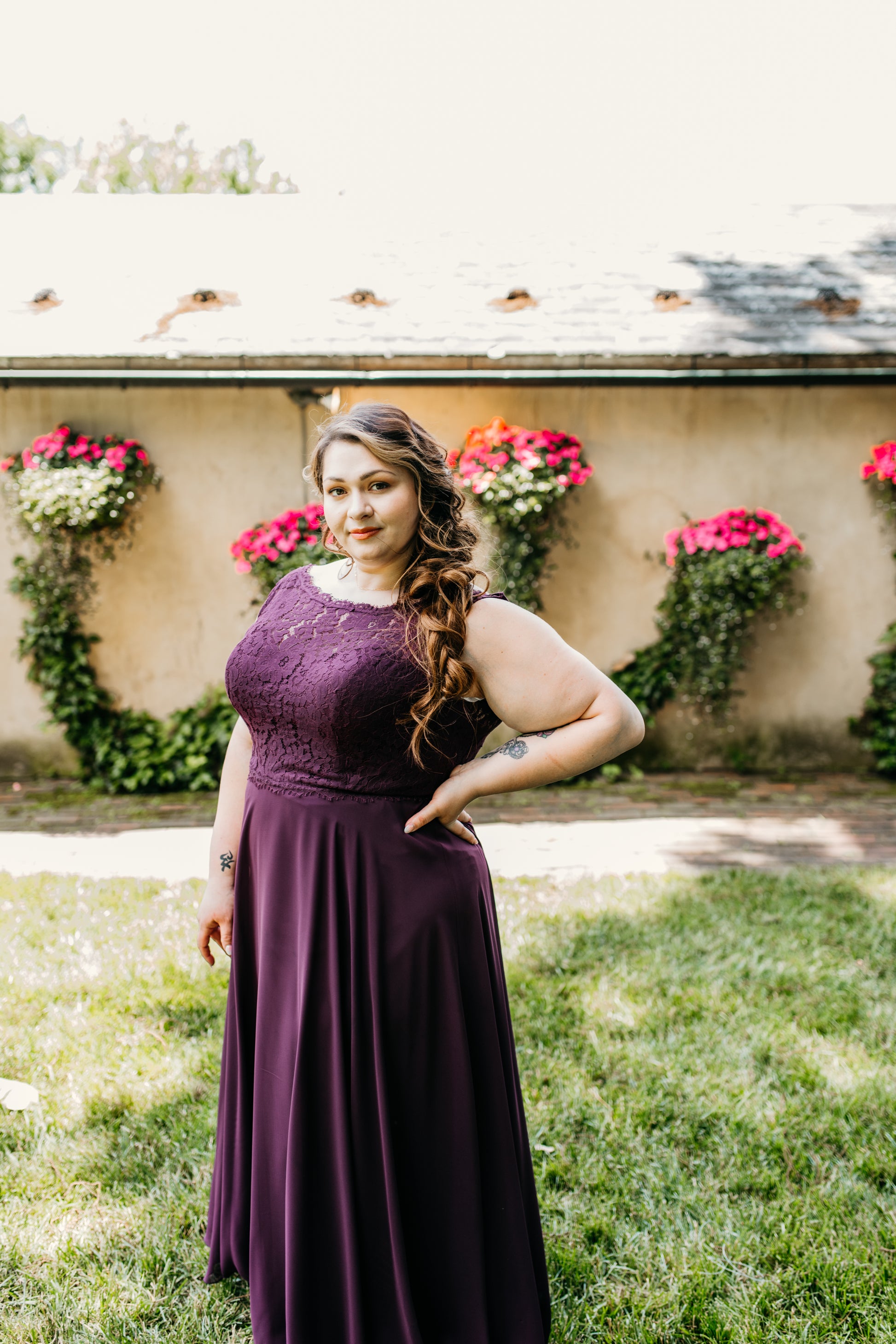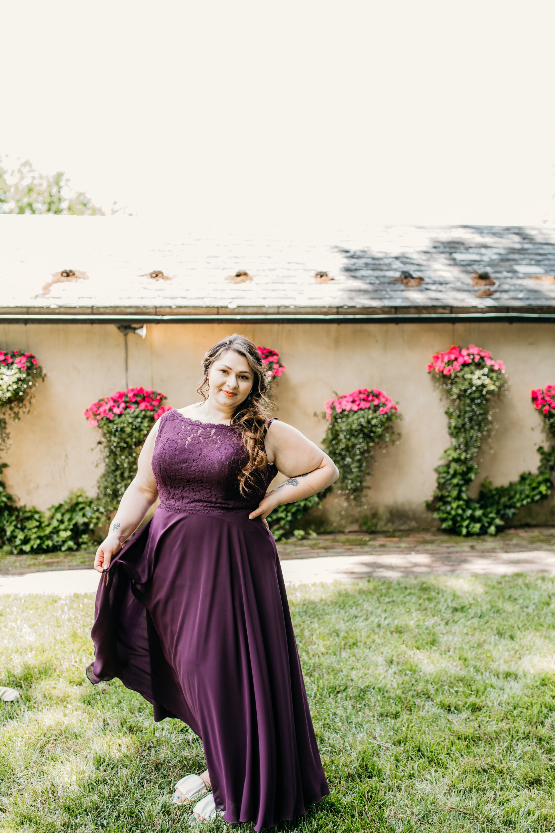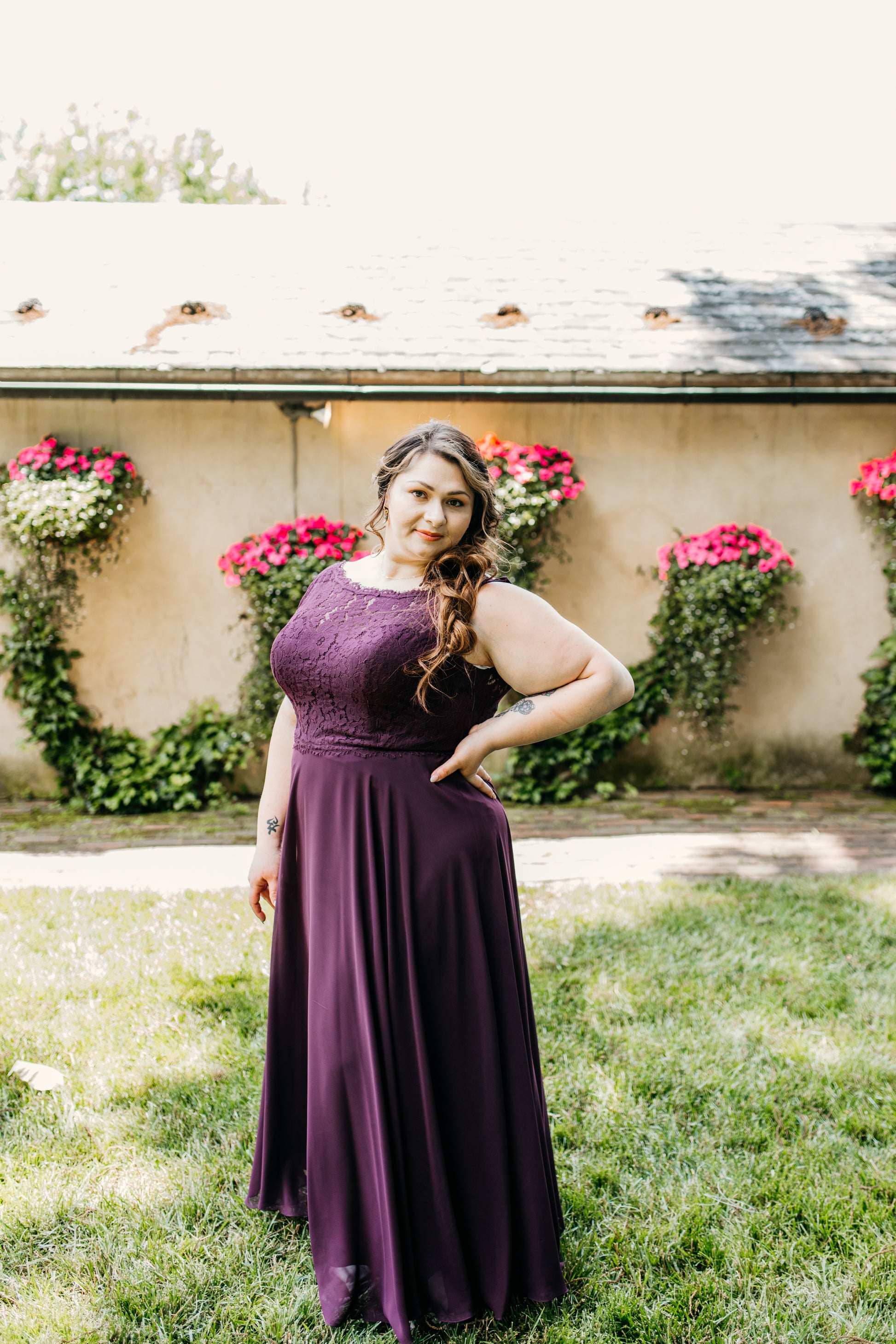 Lace boat neck illusion bodice with built-in bust padding, 1.25" wide straps, natural waist, chiffon a-line skirt