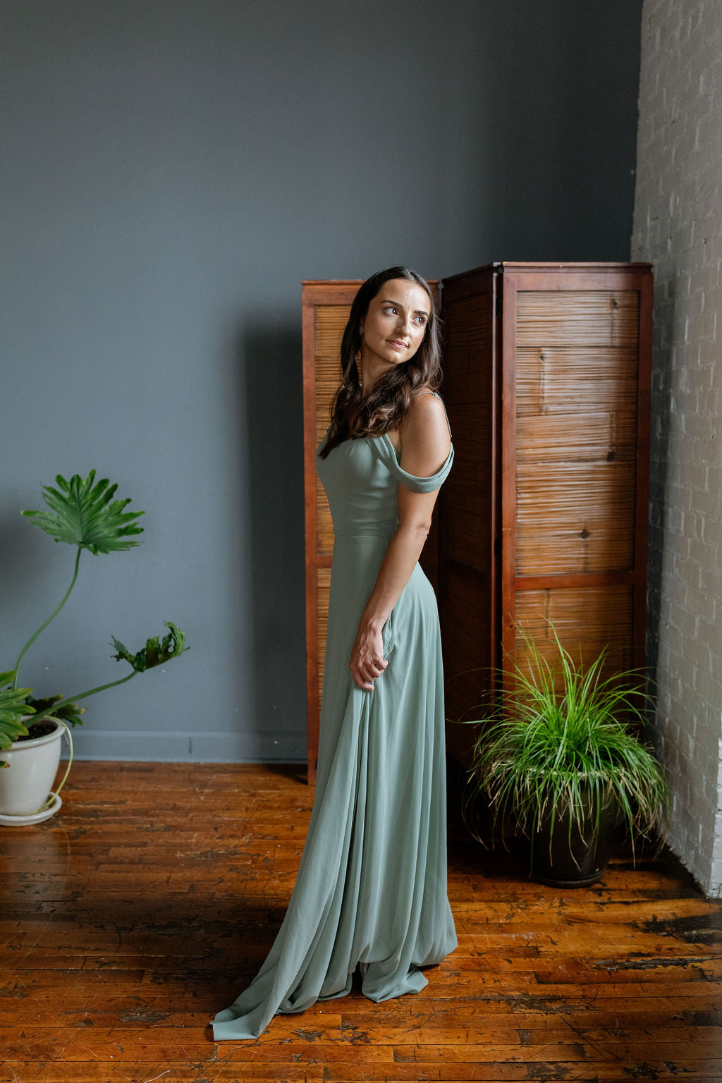 Beautiful sage green chiffon, perfect for any season, available in sizes 2-28 across three styles.
