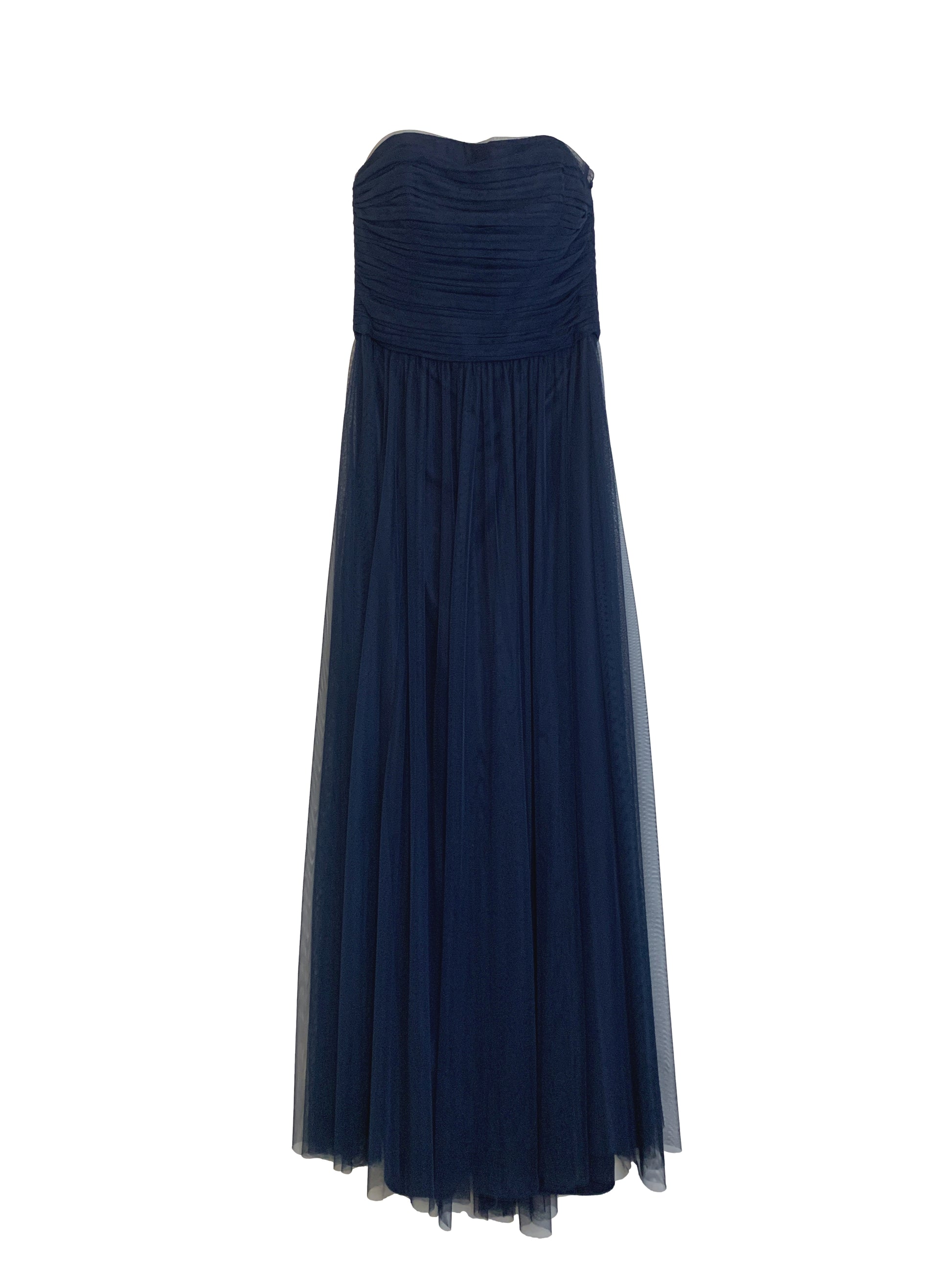 Elegant draped tulle strapless bodice, natural waist, gathered a-line skirt