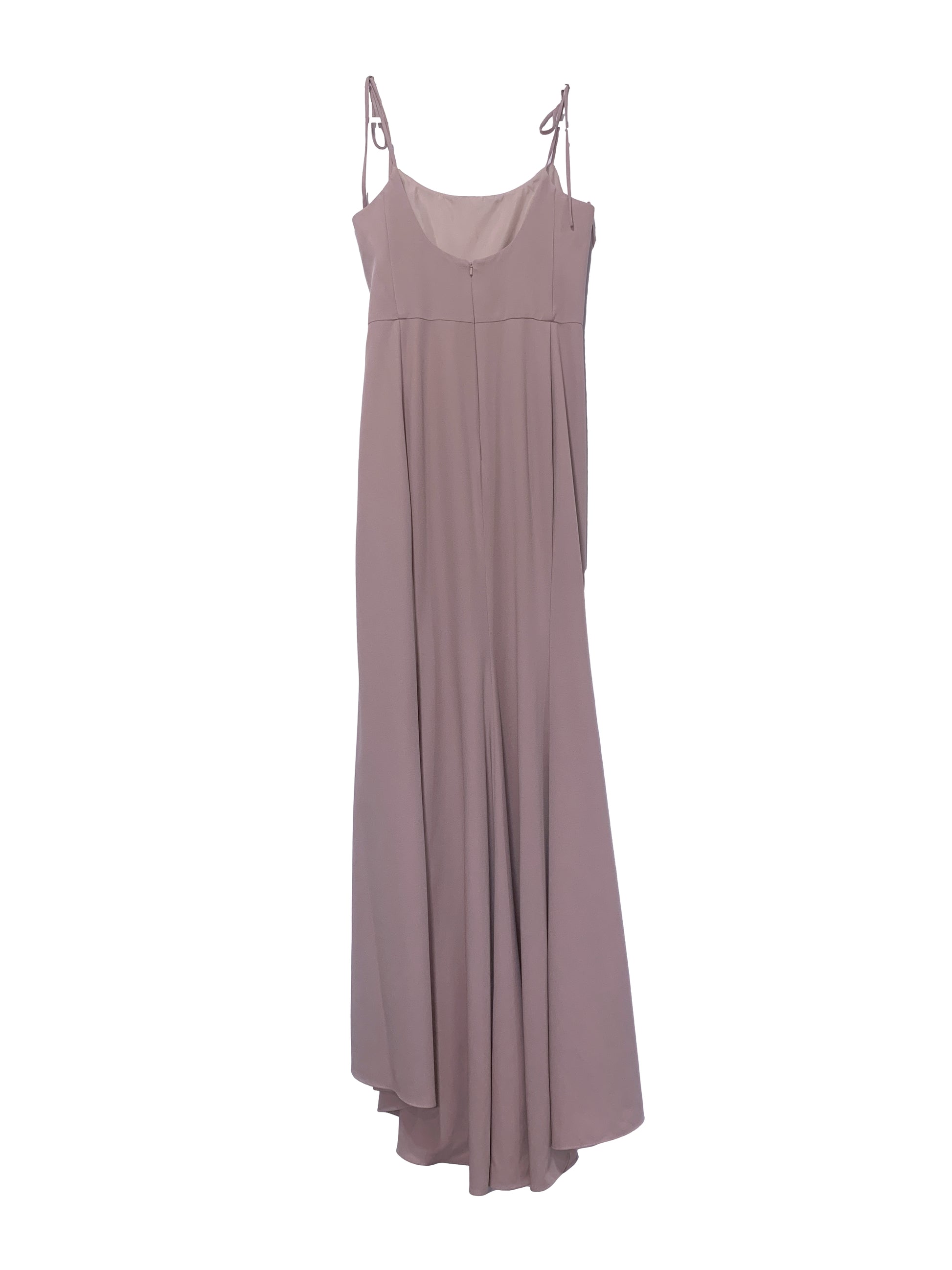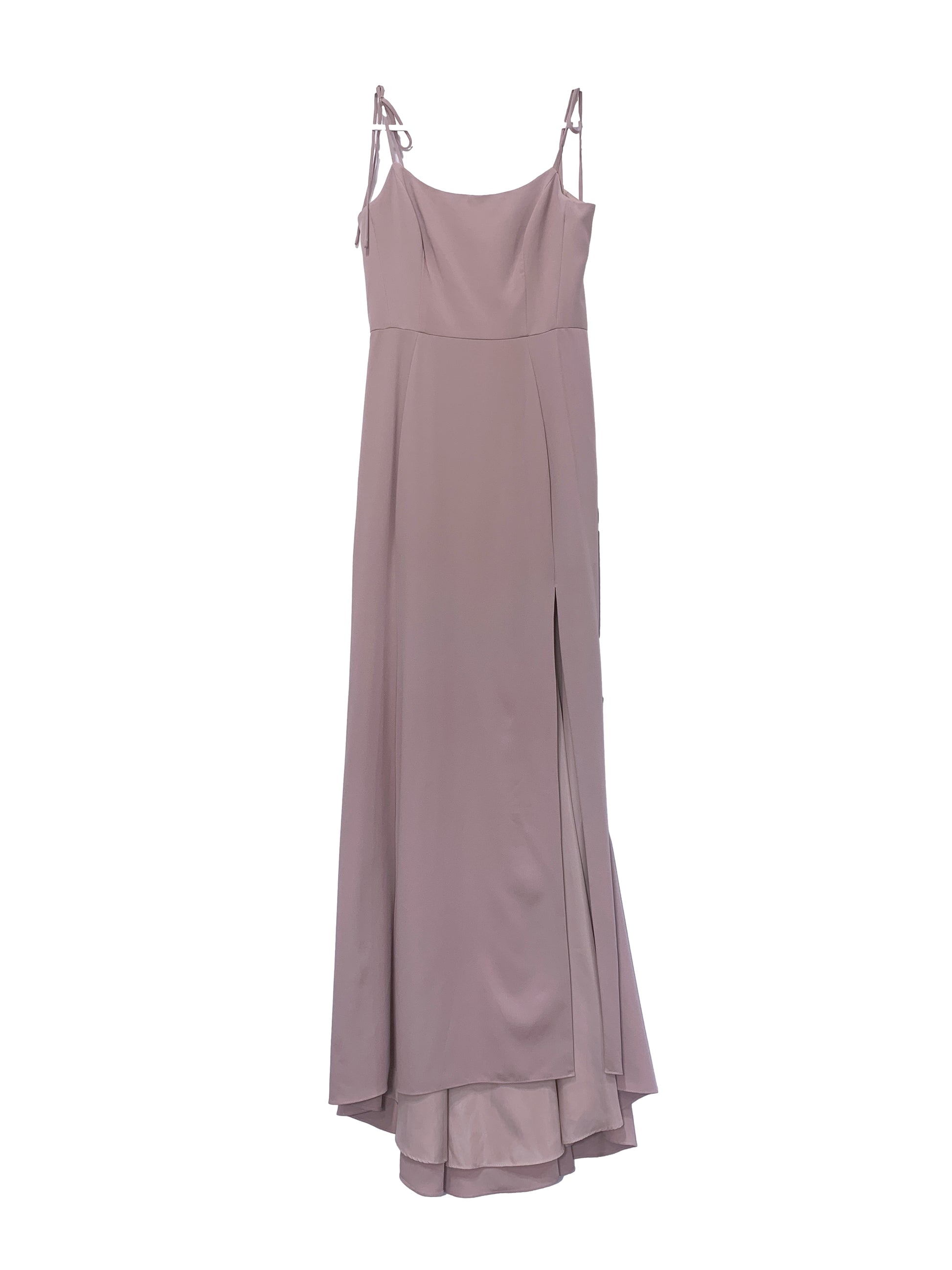 elegant scoop neck princess seam bodice, spaghetti straps tie at shoulder, natural waist, princess seam a-line skirt